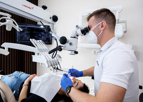 Platí pravidlo: Vyliečime len to, čo vidíme. A my vidíme všetko! Dentálny mikroskop sú druhé oči doktora. Umožňuje detailný náhľad na problém a výrazne pomáha liečbe závažných prípadov. Pomocou mikroskopu vedia naši doktori presne zacieliť liečbu na postihnuté tkanivo, čo umožňuje vysoký stupeň zachovania zubu. Mikroskop sa taktiež využíva pri liečbe koreňových kanálikov a počas protetických prác.